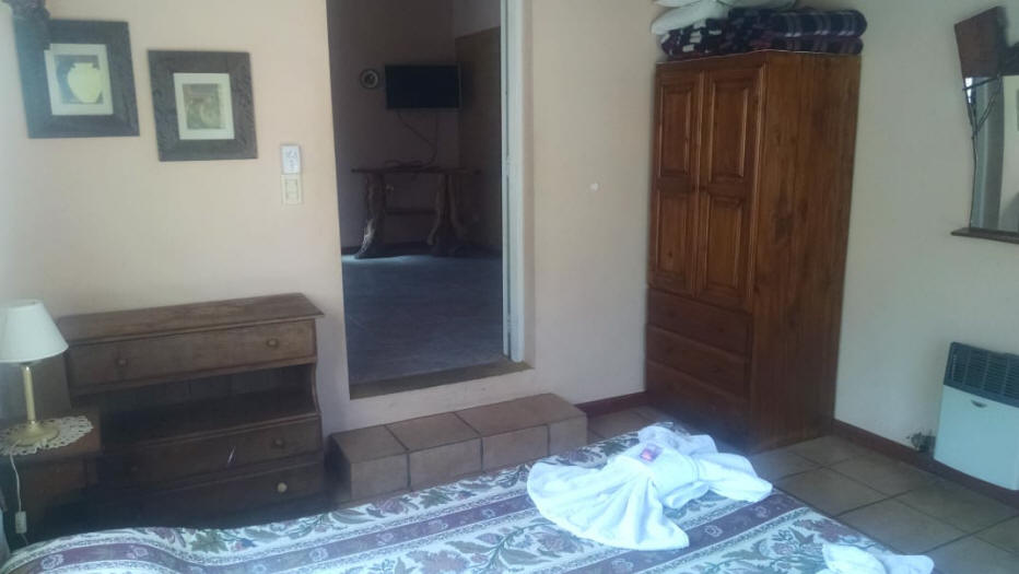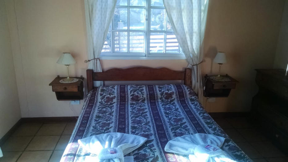 La cabaña cuenta con una habitación con cama matrimonial y 2 sofá cama doble en un amplio living.