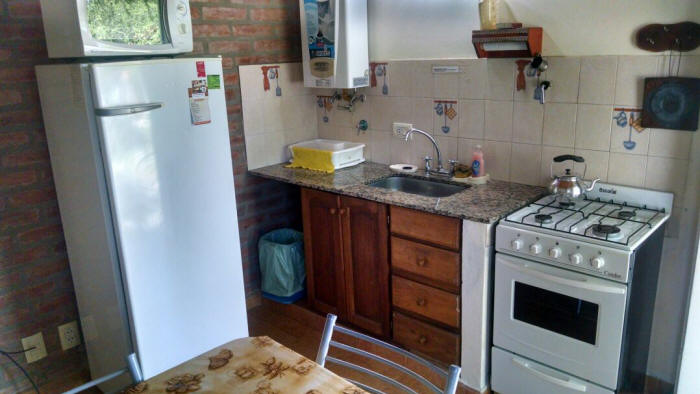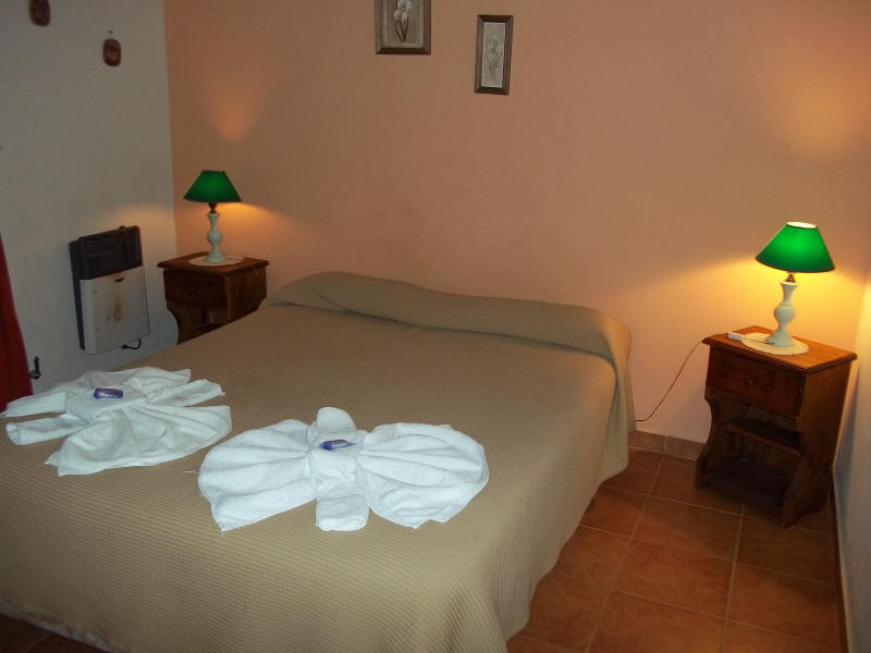 La cabaña cuenta con una habitación con cama matrimonial y amplio placard. En el comedor hay una cama cucheta. El baño esta completo con ducha.